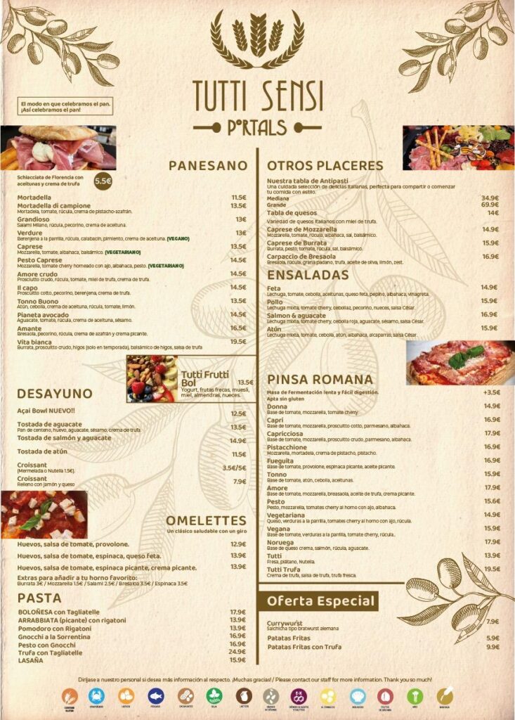 Una selección cuidada de platos mediterráneos e italianos, pensados para cada momento del día. Disfrútalos en el restaurante de Tutti Sensi o directamente desde tu barco, con ingredientes frescos y sabor auténtico.